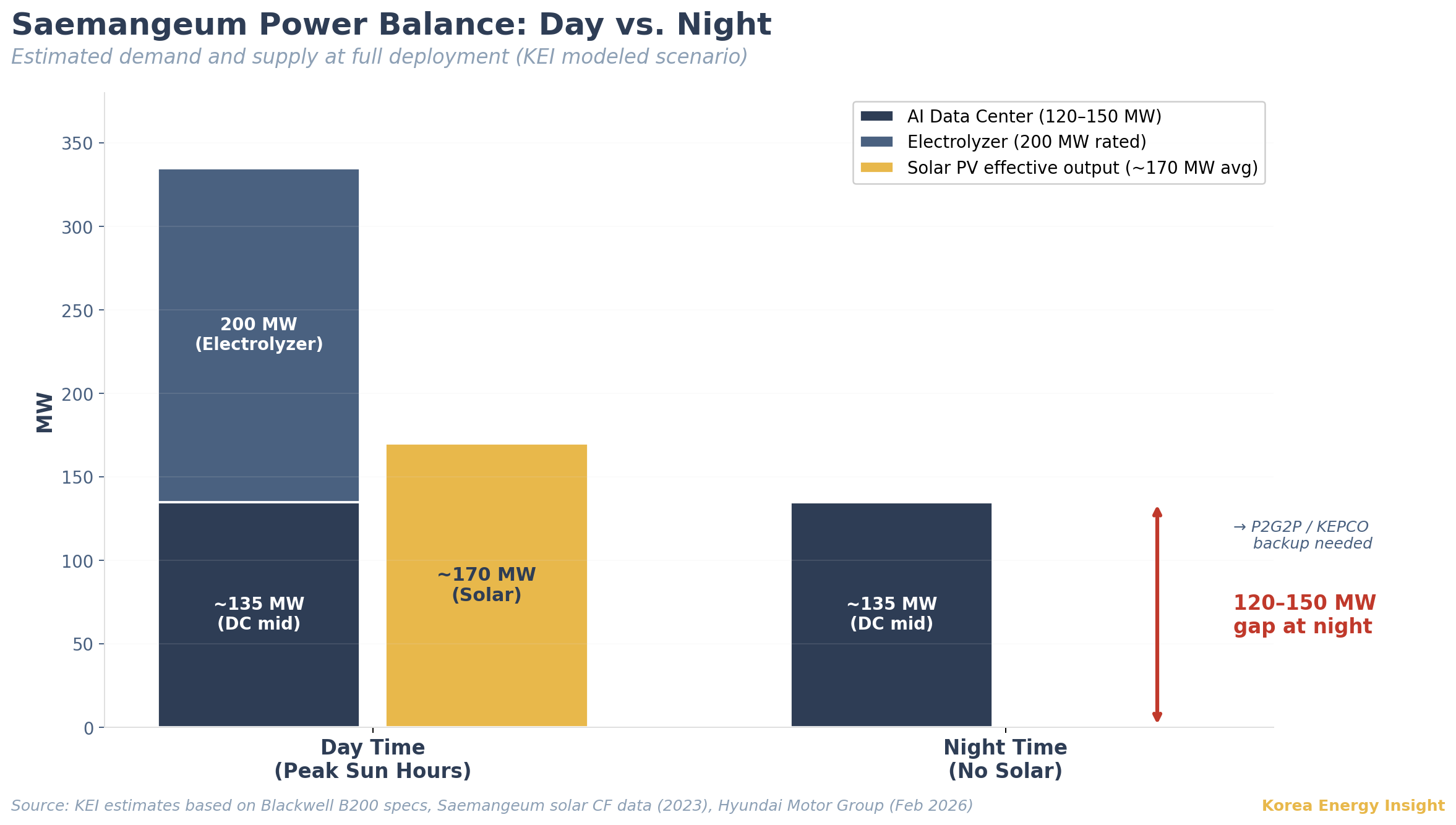 Whether P2G2P works at 120–150 MW scale has not been demonstrated anywhere. KEPCO grid backup will likely still be needed for redundancy. But the availability of this option materially changes the project’s grid dependency compared to SK’s earlier attempt, which had no comparable fallback. What Hyundai has not publicly disclosed is how the data center will actually be powered at night. That is the gap this analysis is reading between the lines to fill.