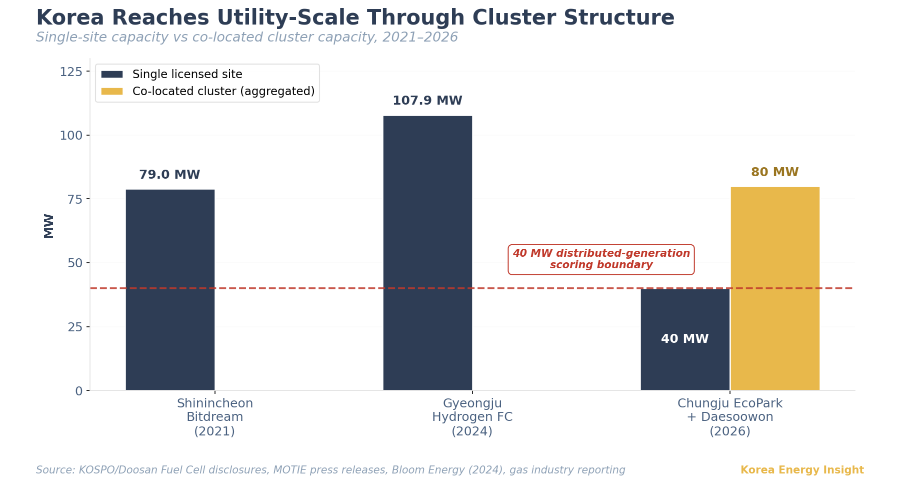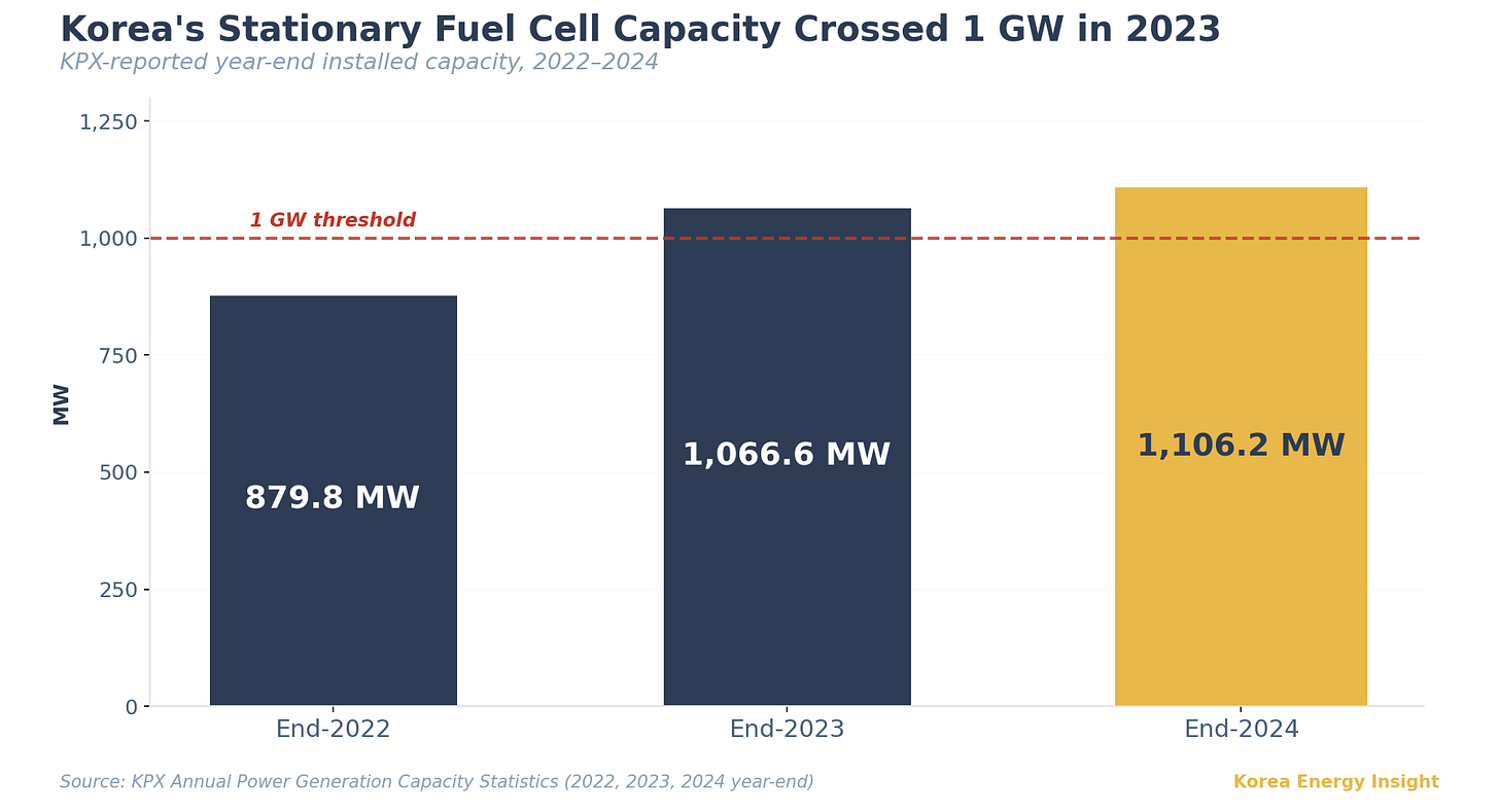 That framing deserves attention beyond a corporate milestone. Korea’s fuel cell fleet has been reaching utility scale for years, while the regulatory framework keeps treating it as distributed energy. The new cluster makes that contradiction harder to ignore.